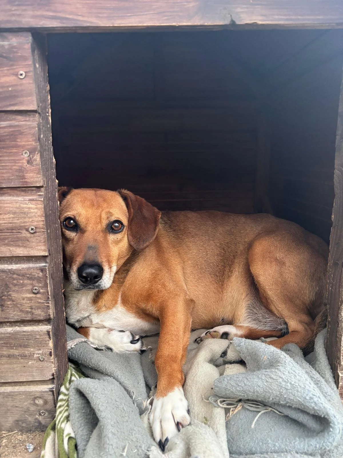 Sandy has a very sweet and calm personality. In Hopeland she lives with many other dogs, which means she is well socialized. Once she has taken you to her heart, she also likes to cuddle. Sandy absolutely loves treats, so this is a good way to make her trust you. Sandy doesn’t know the leash yet, so this is something she still has to work on.